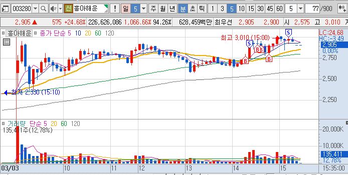 오후 장을 살펴보다가 흥아해운이 20%대에서 횡보중인 모습을 보고 종베 종목으로 들어가자 싶어 매수했다가 바로 슈팅이 나와줘서 우선 매도하고 다시 조정구간에서 주워 부분 매도로 약수익 챙기고 홀딩.